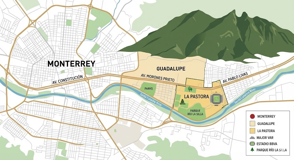 - ✅ スタジアムは**グアダルーペ(Guadalupe)**にある(住所:Av. Pablo Livas 2011, La Pastora)