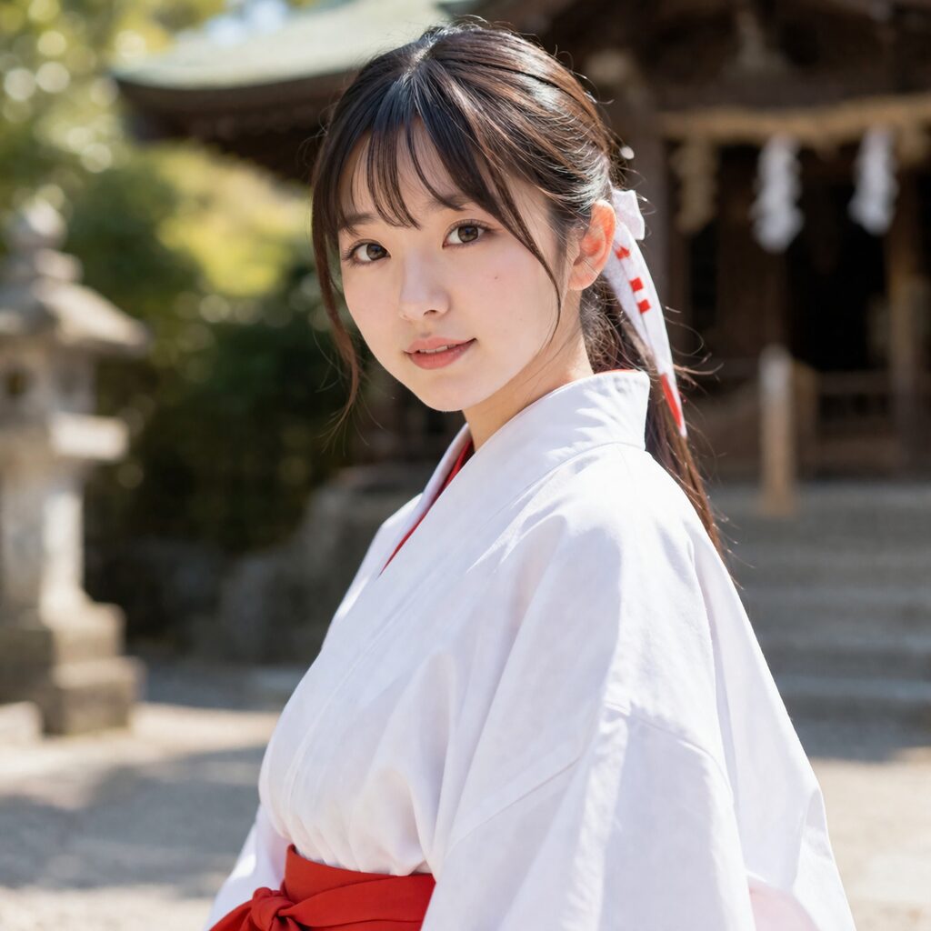 When people visit a Japanese shrine for the first time, one of the most memorable sights is often a young woman dressed in white and red, moving quietly through the shrine grounds or helping visitors at a counter. She is called a miko.