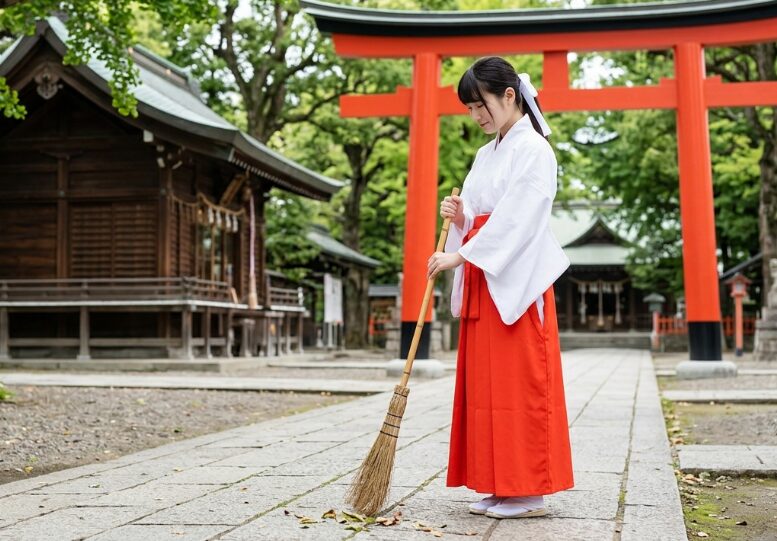 Shrine work is not only ceremonial. It can also include cleaning, arranging items, preparing materials, and helping maintain the peaceful environment of the shrine.